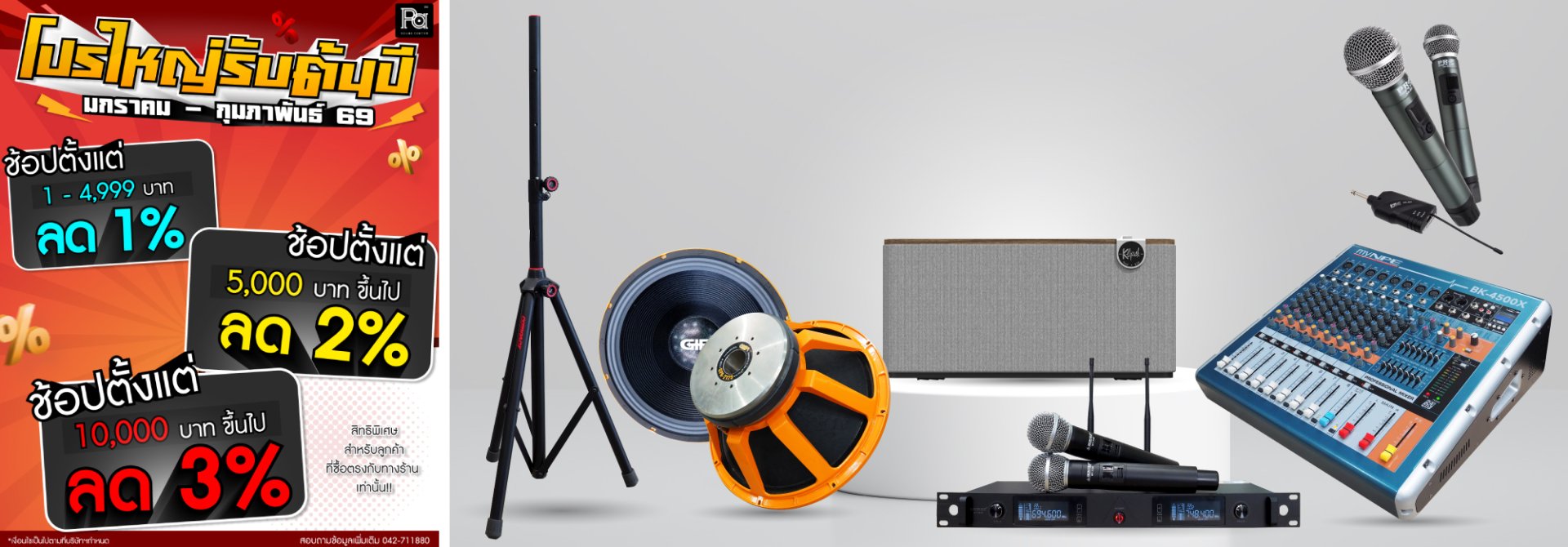 อาณาจักรเครื่องเสียงครบวงจร ทั้งระบบเสียง ระบบไฟ ระบบภาพ จำหน่ายปลีก - ส่ง เครดิตราชการ "ด้วยทีมงานมืออาชีพ พร้อมให้คำแนะนำออกแบบระบบเสียง พร้อมบริการติดตั้งครบวงจร ด้วยราคาถูกดีที่สุด บริการส่งทั่วประเทศ เพื่อสนองความต้องการของลูกค้าแบบเบ็ดเสร็จ"