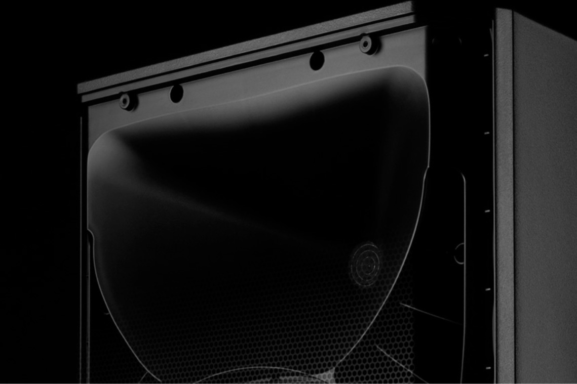 ตัวตู้ทำจากวัสดุ PP Composite ที่เสริมความแข็งแรงด้วยโครงสร้างภายในแบบ M-Brace ช่วยลดการสั่นสะเทือนของตู้และเพิ่มความนิ่งของเสียง ด้านหน้าใช้ตะแกรงเหล็กเต็มใบเพื่อปกป้องดอกลำโพง ส่วนปากฮอร์นออกแบบใหม่เป็น True Resistive Waveguide ให้มุมกระจายเสียงกว้าง 100° x 60° ควบคุมทิศทางเสียงได้แม่นยำและลดความเพี้ยนในย่านเสียงแหลม